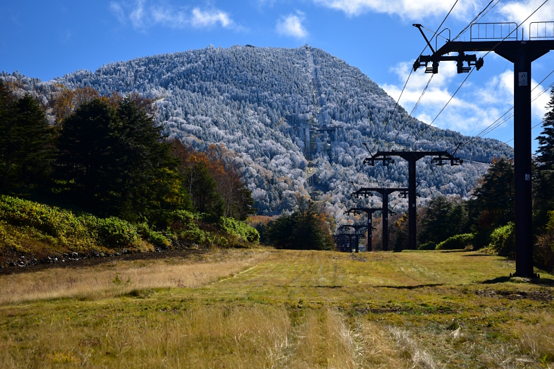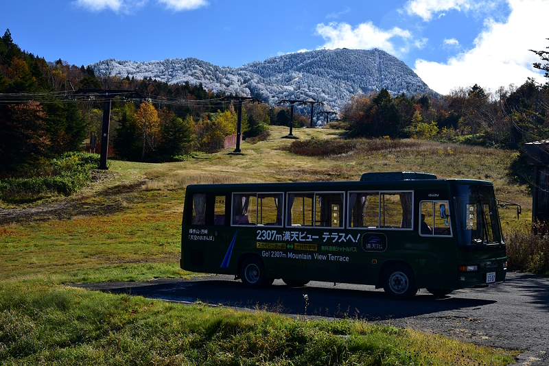 志賀高原の標高の高い場所では雪となり紅葉と雪景色が綺麗だった。