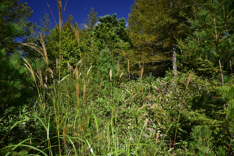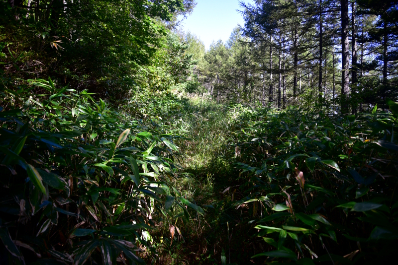 最初から熊笹をかき分けて進みます。