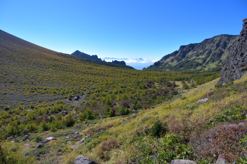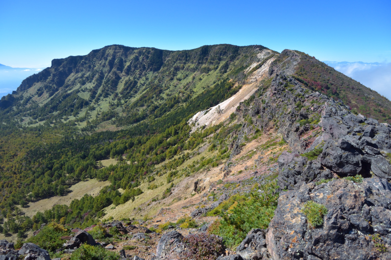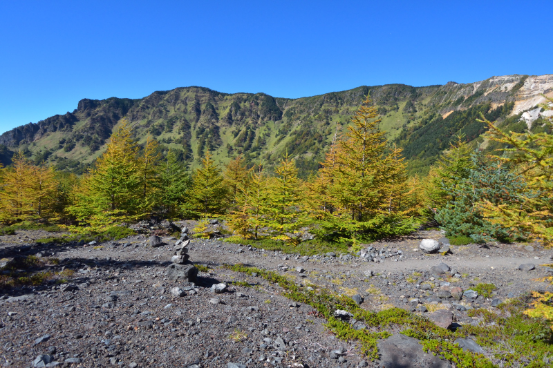 天狗温泉(7:37) ~ 火山館(9:18) ~ 前掛山分岐(9:52) ~ 鋸岳(10:40) ~ 黒斑山(12:21) ~ 火山館(13:34)