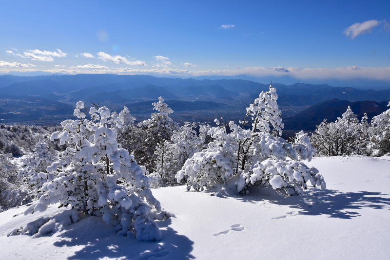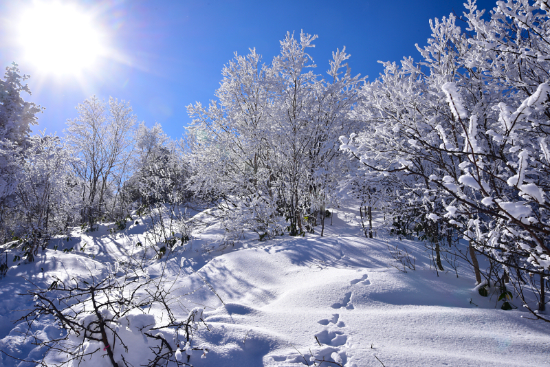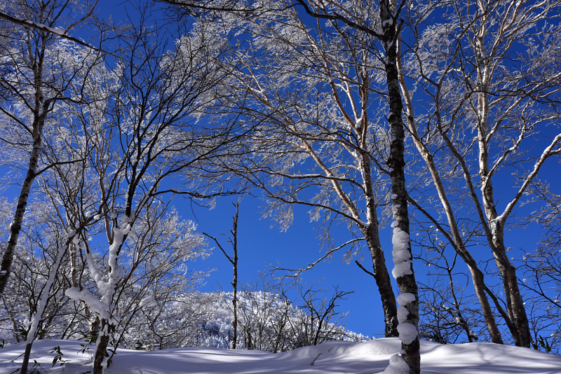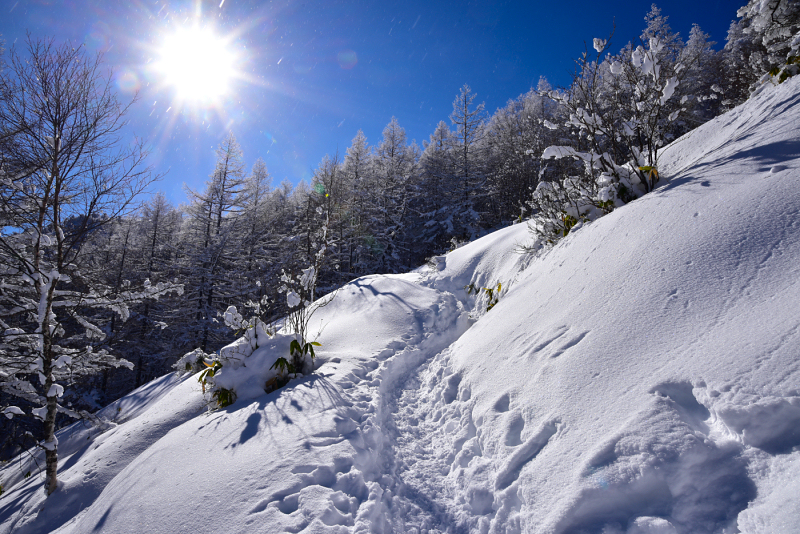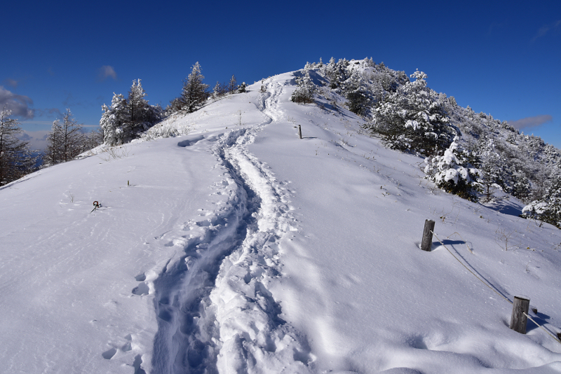 多くの人達が歩いたようで、山スキーの跡も見られます。