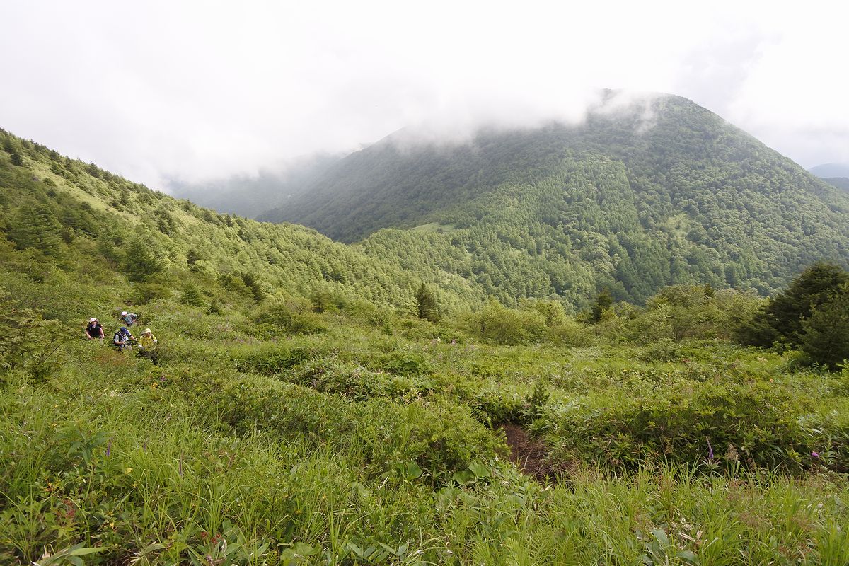 少しだけ青空が見えてきました。湯の丸経由で烏帽子岳に登る人達が大勢おります。