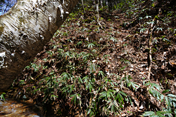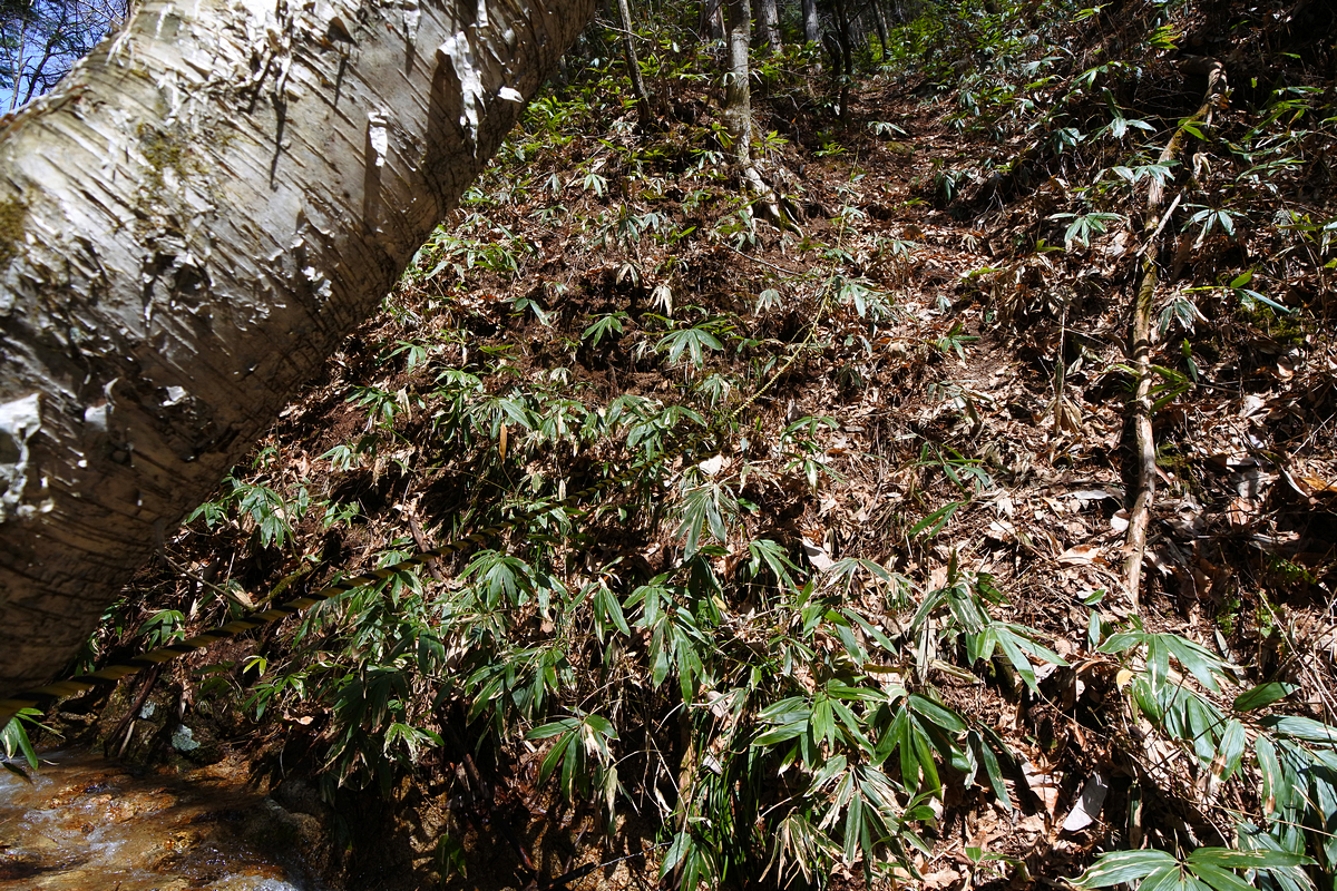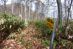 林道終点より高瀬川線No,55経由で富士尾山に登る。