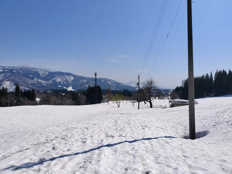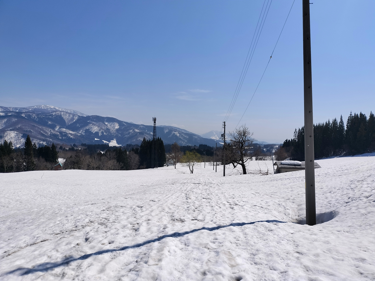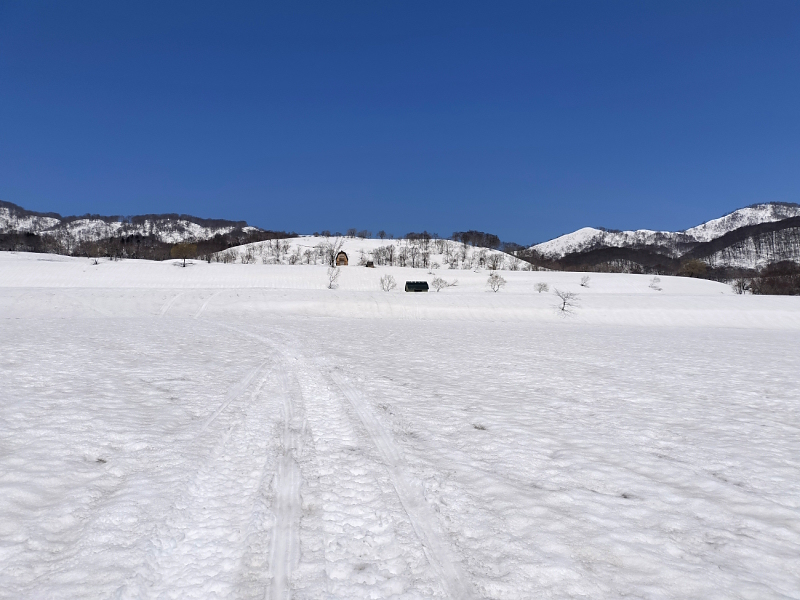 目標の鉄塔が見えてきました。ストックで漕ぎながら移動しています。
