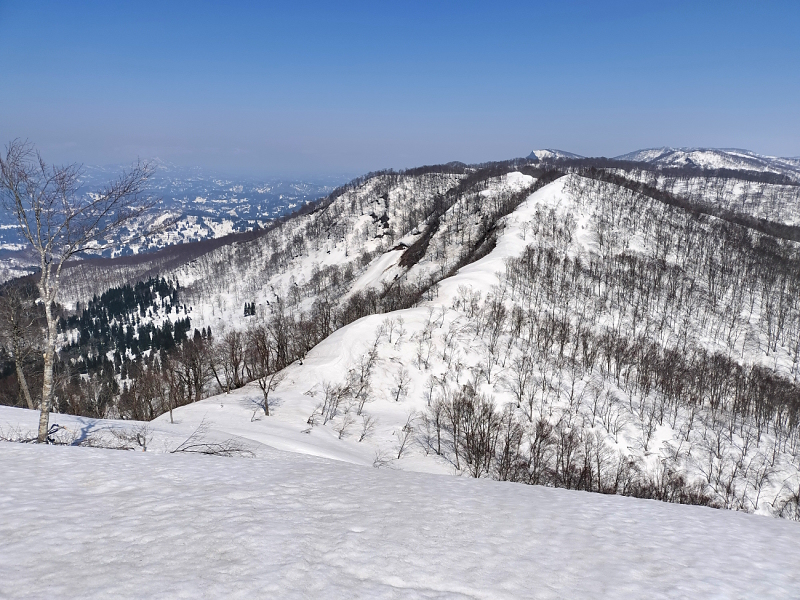 だいぶ登ってきました。遠くに鍋倉山が見えます。