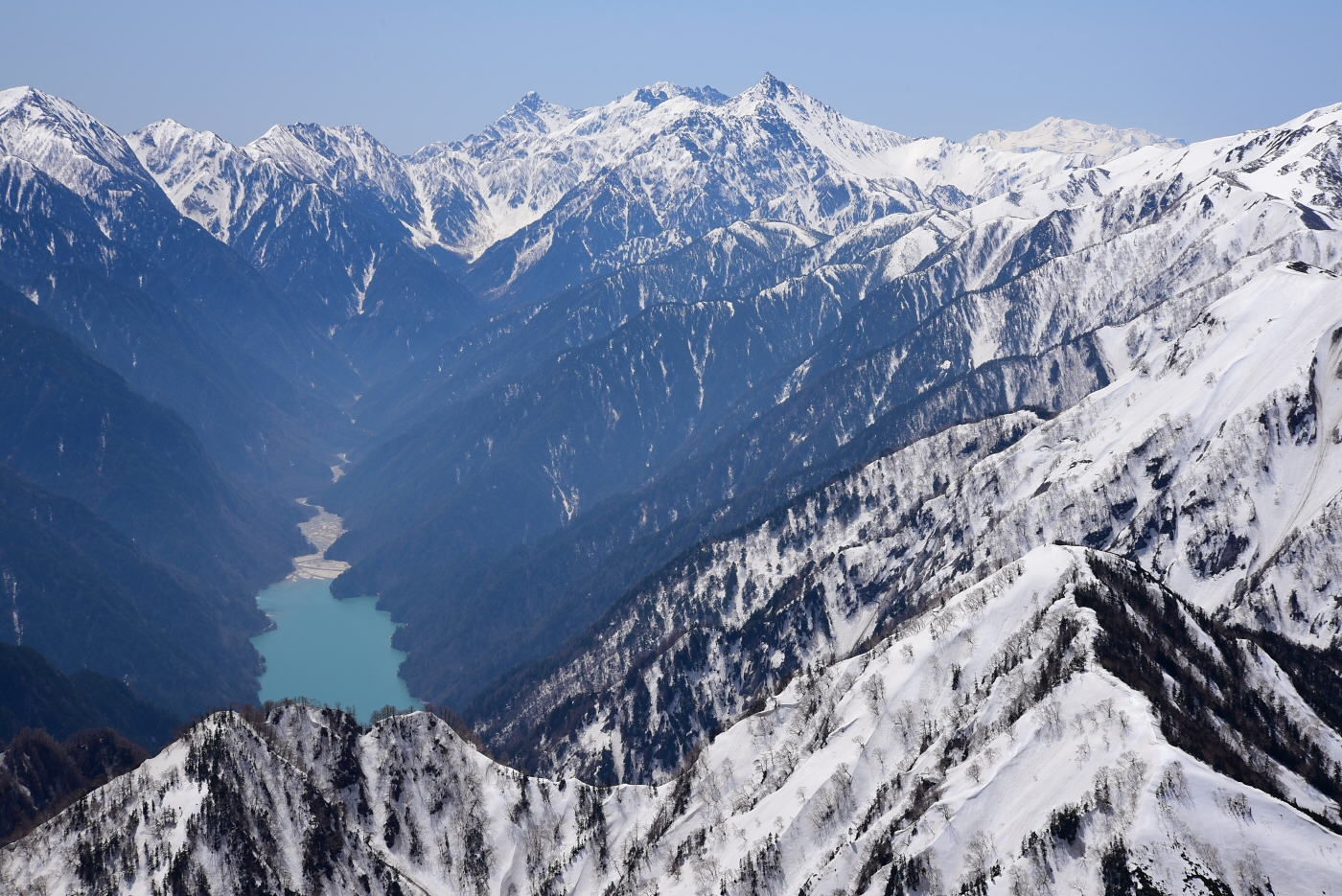 黒部湖と立山、剣岳。