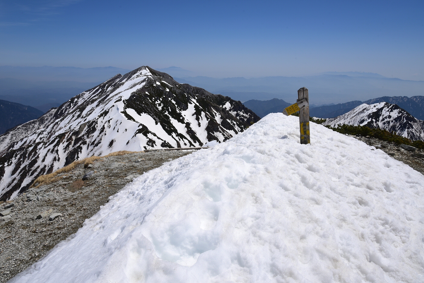 蓮華岳も雪は少ないです。