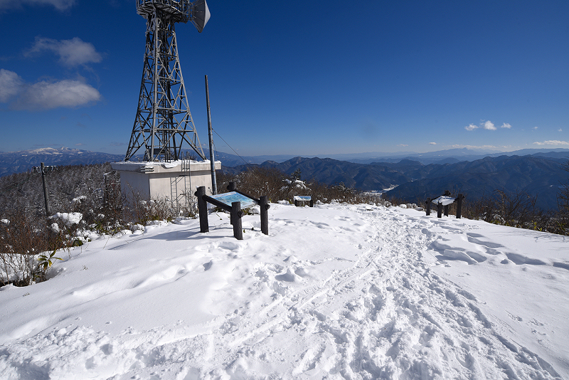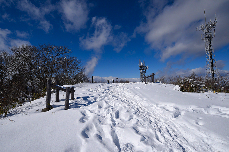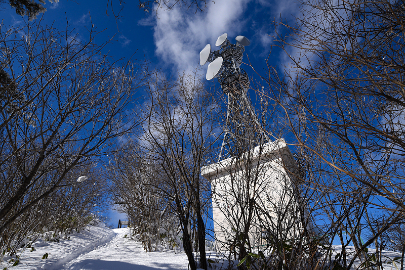 山頂のアンテナが見えてきました。この周辺の山々は、見晴らしが良いので数多くの電波塔があります。