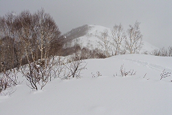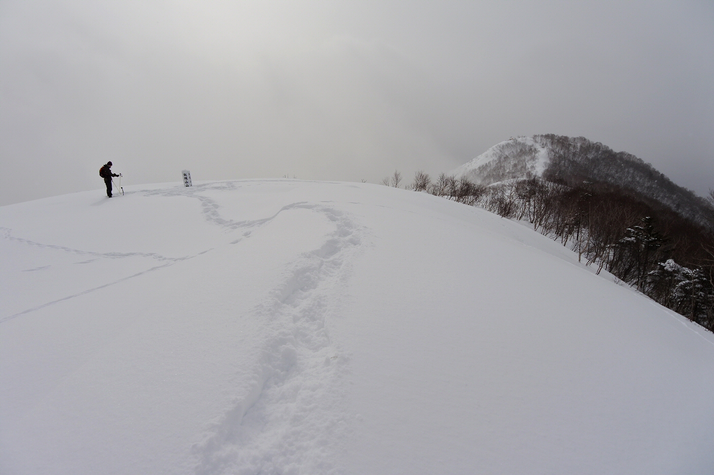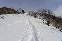 トレースバッチリです。ここからスノーシューを履いて頂上を目指します。