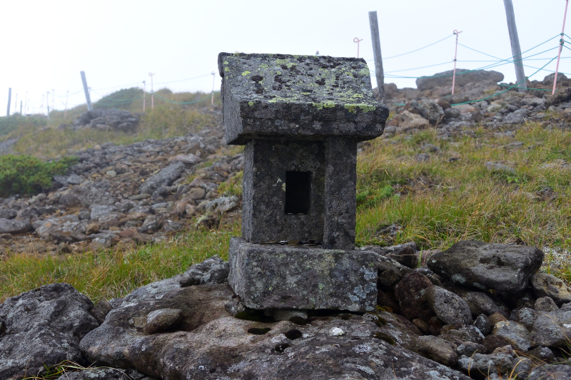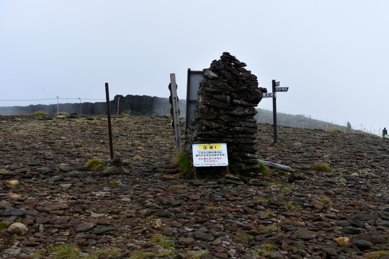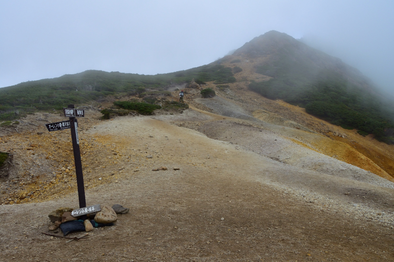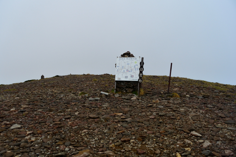 赤岩の頭付近からガスで真っ白。9月ですが、夏山のような風が吹き抜けていきます。