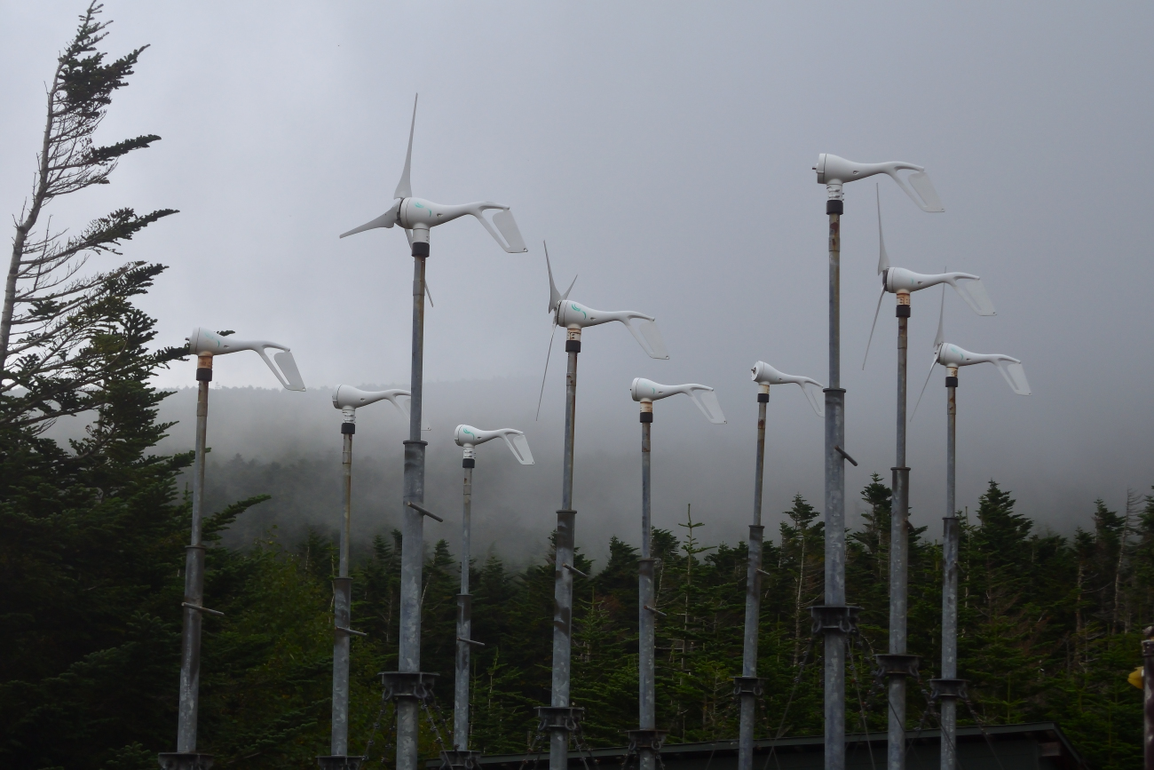 夏沢峠の風力発電は羽が飛んでボロボロです。