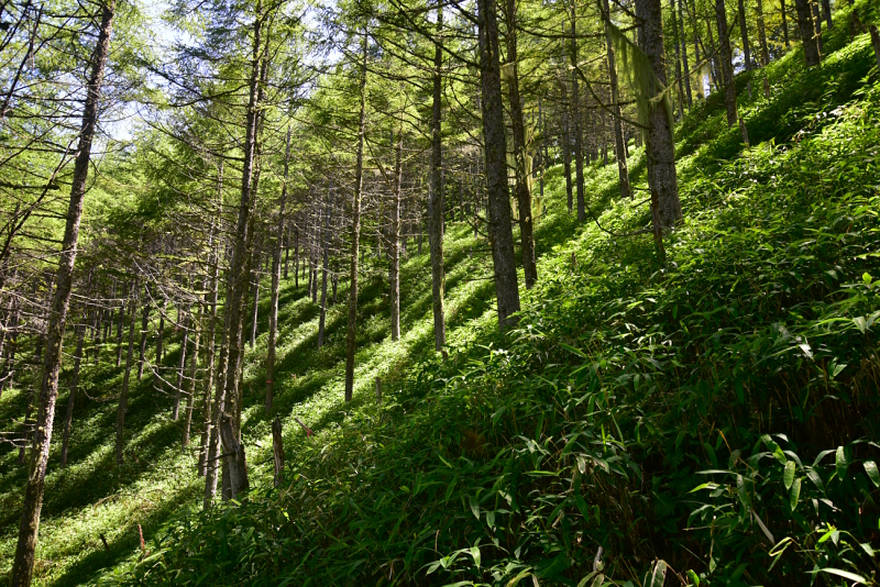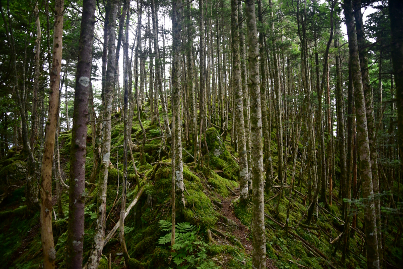 入山の山頂が近くなってくると、手付かずの原生林の山って感じがします。