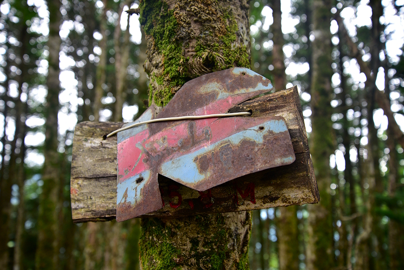目印を見ながら鹿が歩いた跡を進みます。ハッキリした鹿の道は、もっと上に登るありました。