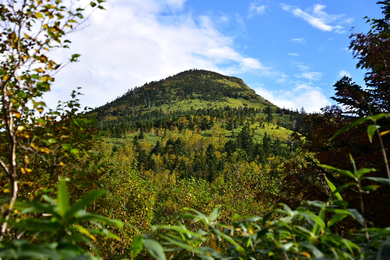 岩菅山が見えてきました。紅葉も少しだけ始まってました。