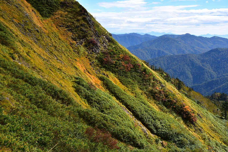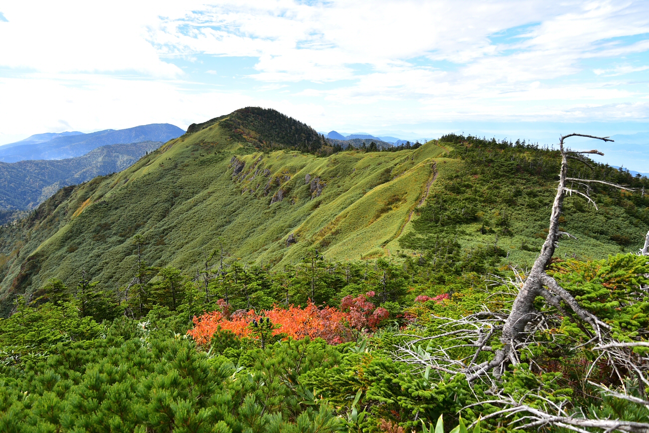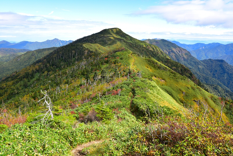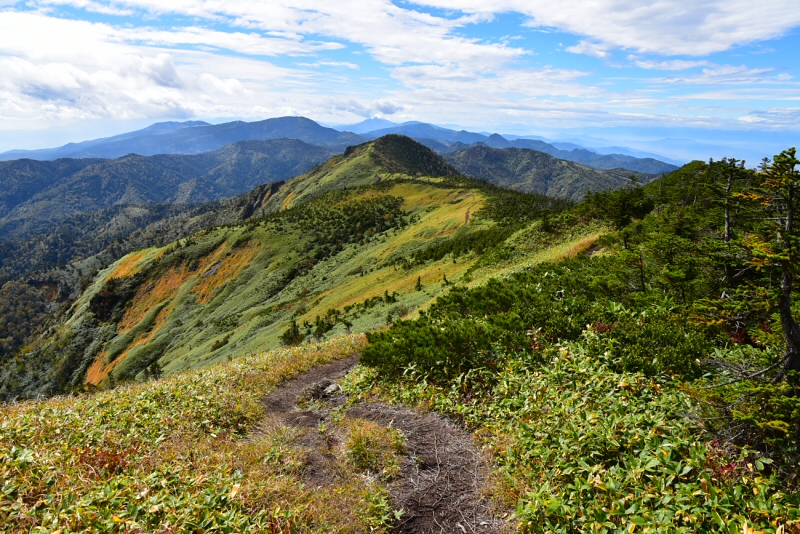 岩菅山から裏岩菅山へ。草紅葉が美しく、気持ちの良い稜線歩きを楽しめました。いつか切明温泉まで縦走してみたい。 |