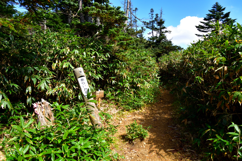 登山口(9:35) ~ アラタイ沢出合(10:04) ~ ノッキリ(11:08) ~ 岩菅山(11:41)
