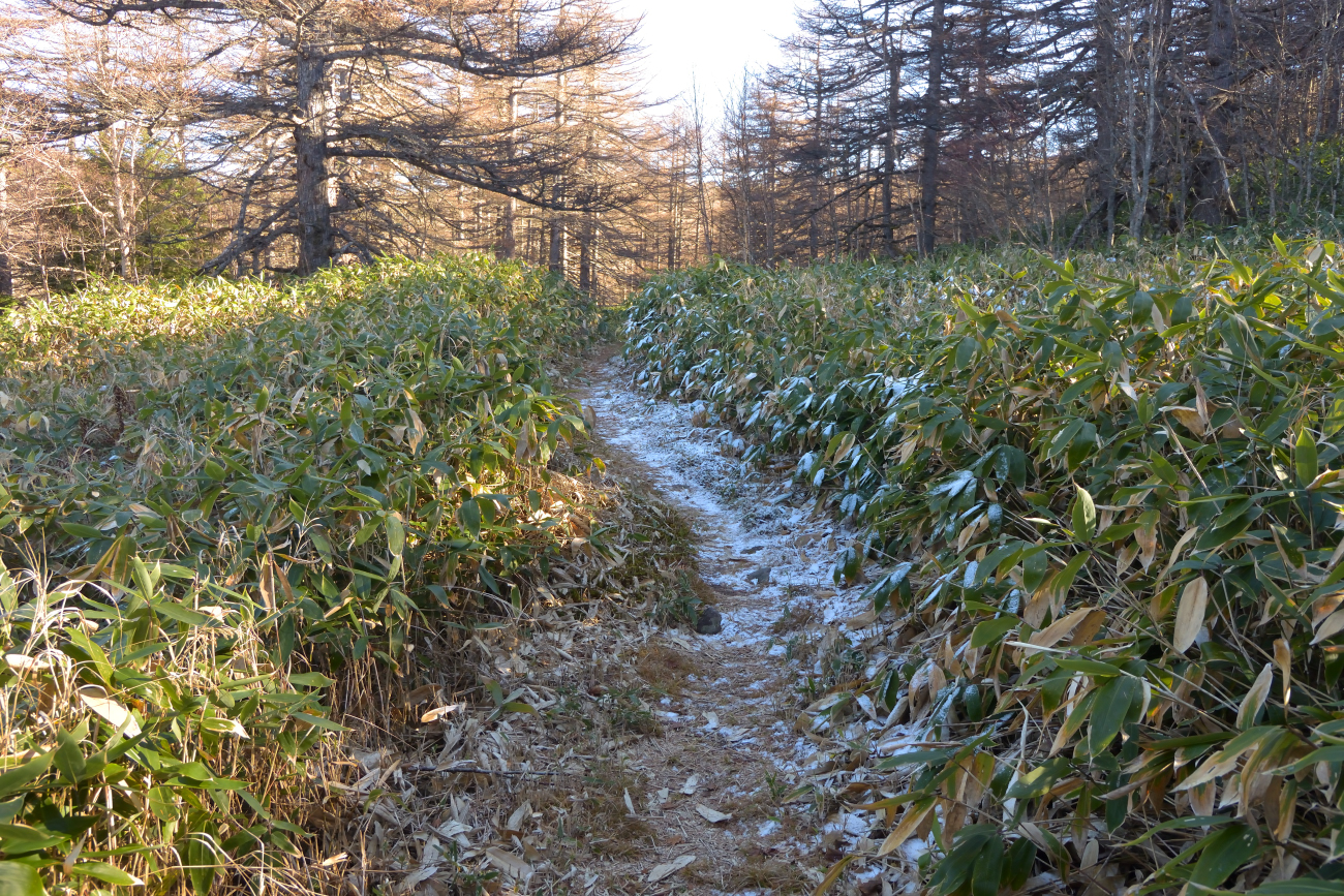 午前中は仕事。午後から手軽に登れる篭の登山を目指すが、池の平湿原の駐車場から登ると簡単に登れてしまうので、地蔵峠から登山道を歩いてみた。 |