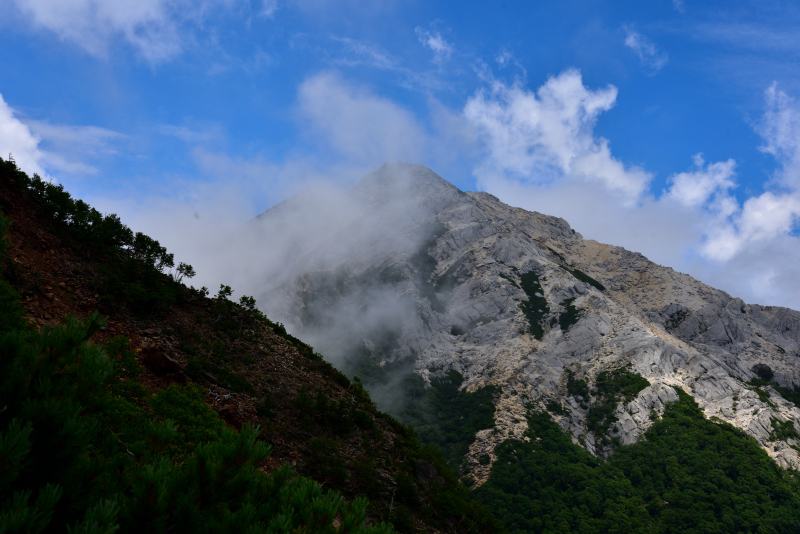 仙水峠で下山者とすれ違い初めました。早朝出発した人達のようです。