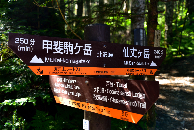 1日目 北沢峠(9:00) ~ 長衛小屋(9:10) ~ 仙水小屋(10:17) ~ 仙水峠(10:48) ~ 駒津峯(12:25) ~ 甲斐駒ヶ岳(13:56)