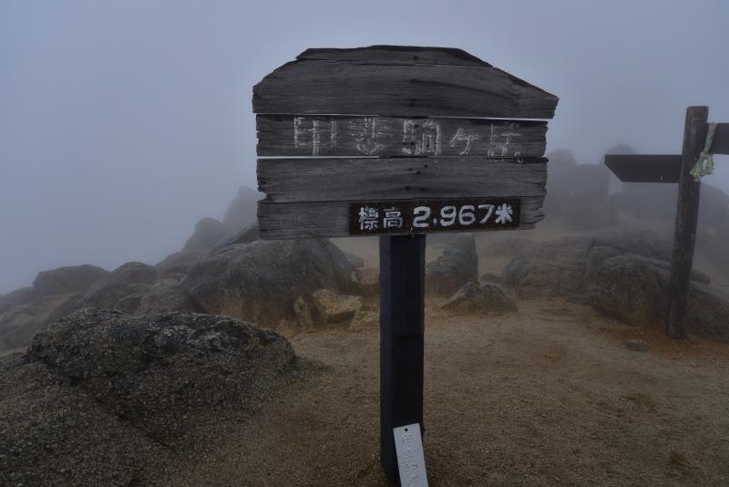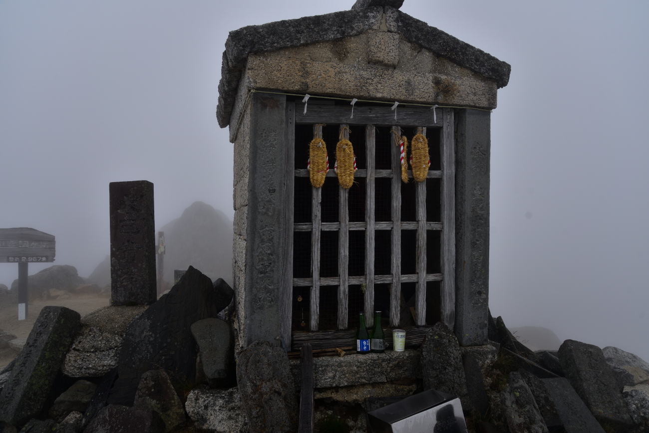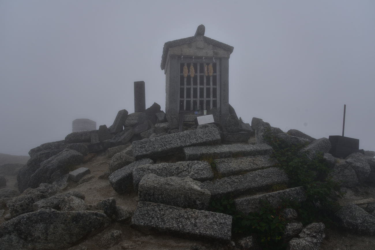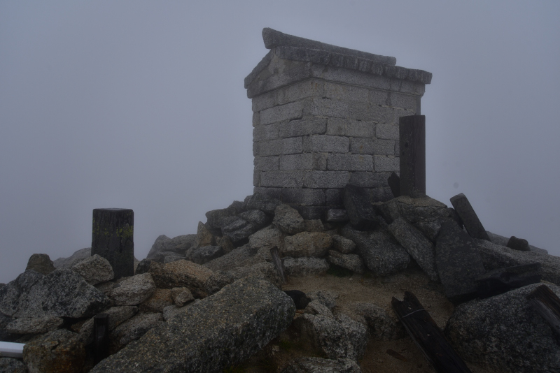 誰も居ない山頂。雨が激しく、即撤収しました。