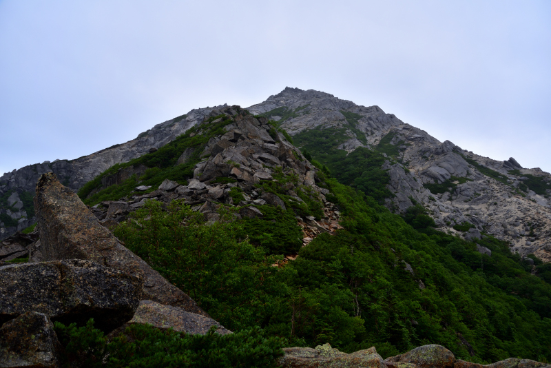 2日目 長衛小屋(5:28) ~ 2合目登山口(5:33) ~ 藪沢大滝の頭(7:03) ~ 小仙丈ヶ岳(8:06) ~ 仙丈ヶ岳(9:16)