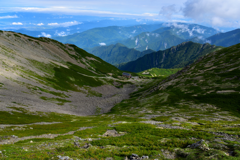 長衛小屋にテントを張り、甲斐駒ケ岳と仙丈ヶ岳に登る。初日は8時出発のバスに乗った為、全ての行動が裏目に出てしまった。翌日は天気予報も外れて、気持ちの良い山登りが出来た。 |
