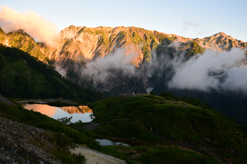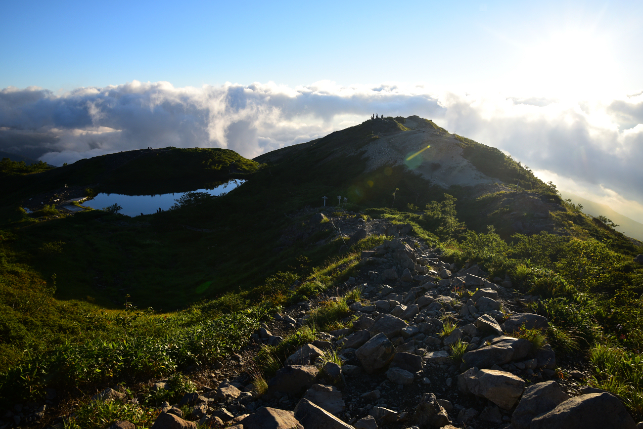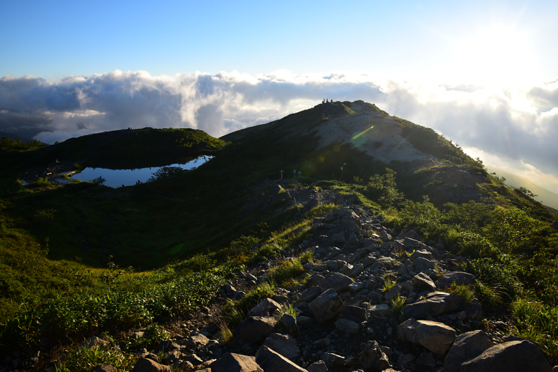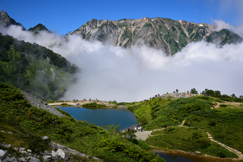 八方池まで下山しました。晴れた瞬間を狙って写真を撮りましたが、ここから先は雲の中です。