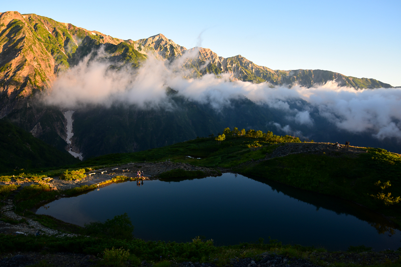 八方池に到着。結構な人数が山を眺めていました。