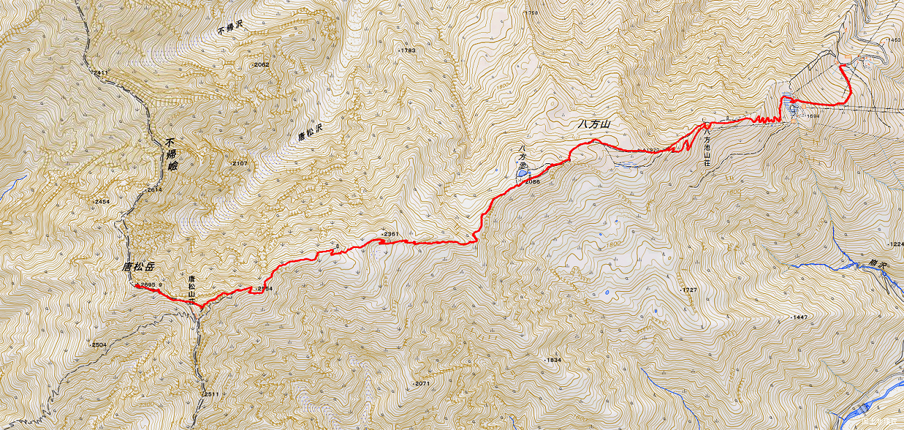 黒菱駐車場(4:04) ~ 八方池山荘(4:47) ~ 八方池(5:34) ~ 唐松岳山荘(7:55) ~ 唐松岳(8:20) ~ 唐松岳山荘(9:07)