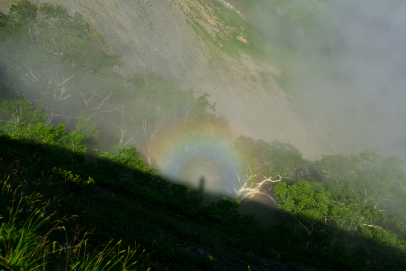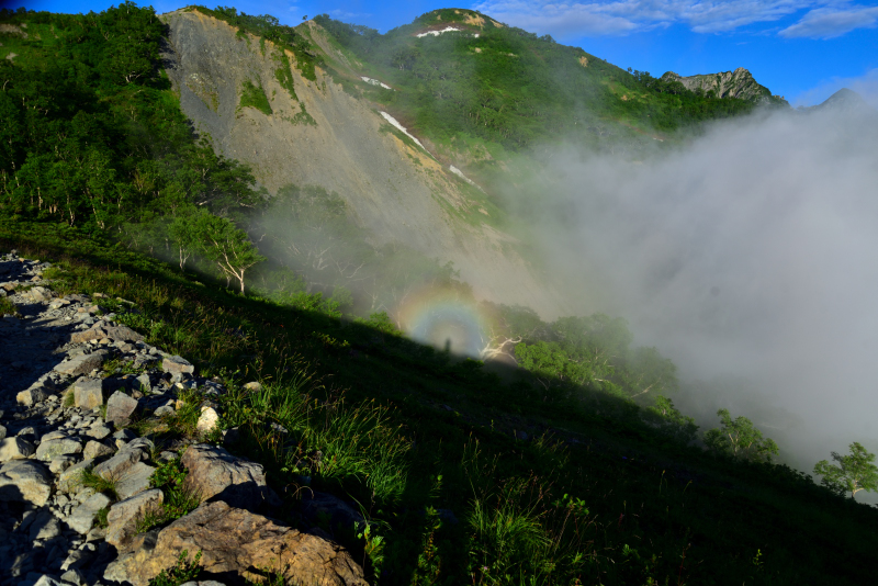天気が良かったのでガスが掛かるまで山頂付近でのんびり。3連休の最終日の為、それほど混んでなかった。 |