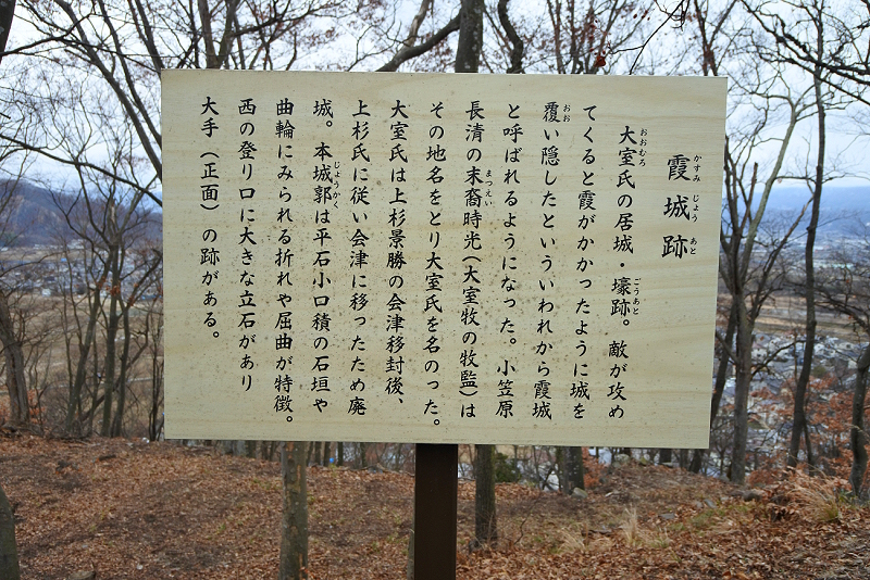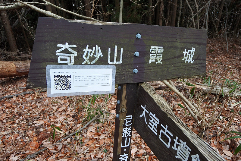 現地ガイドの推薦で大室古墳側から登る。分岐標識にQRコードの地図が貼り付けあったが、何の為に貼ったのか意味が分からん。霞城跡は千曲川に掛かる霧で見えなくなるので霞なのか?
