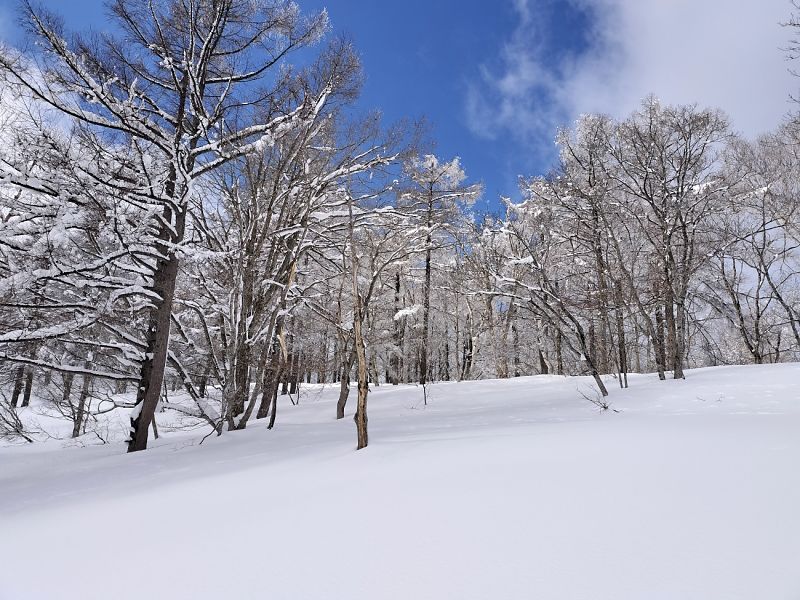 前日の雪のお陰か、素晴らしい森が広がってます。