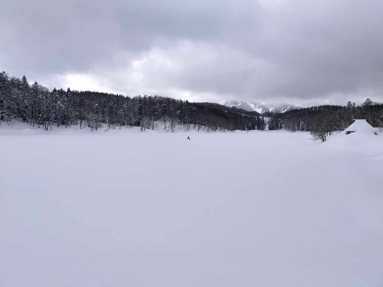 シューっと滑って希望湖に到着。釣りをしてる人がチラホラ。