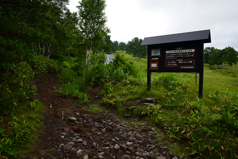 菅平牧場の登山口にやってきました。遅めの出発だったので下山してくる人がいました。