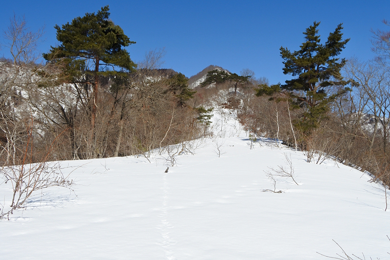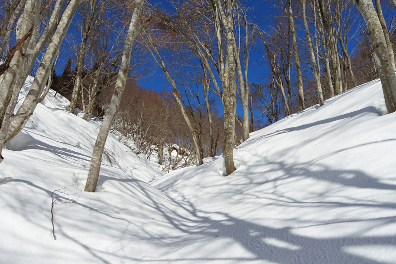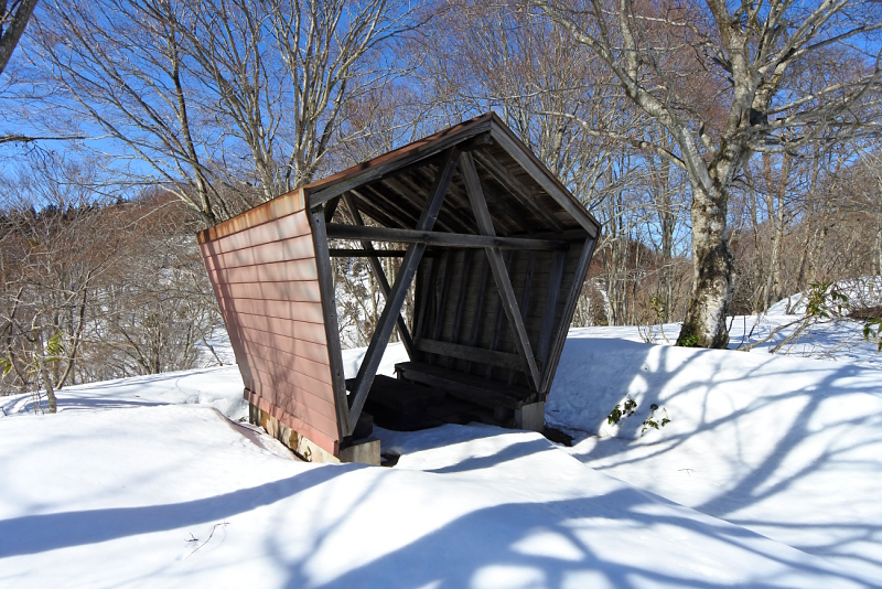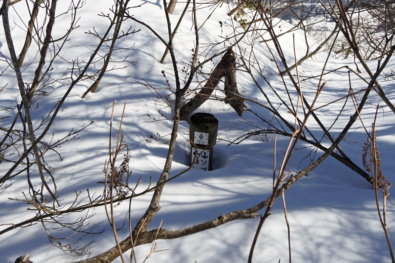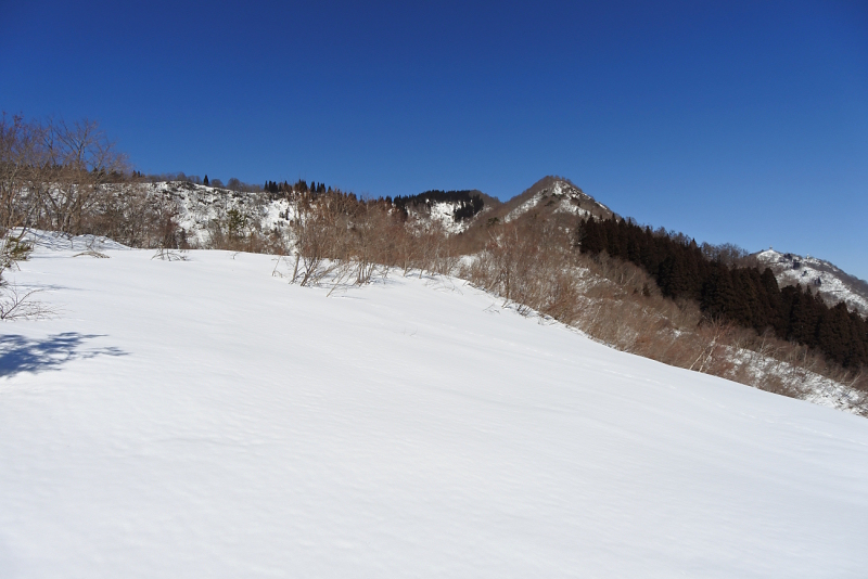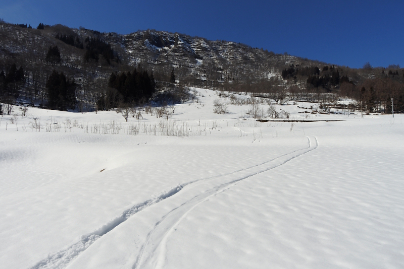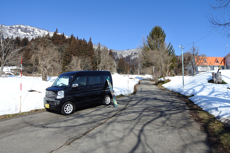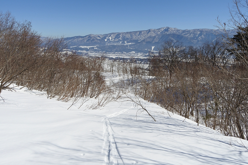 信濃平スキー場跡地から黒岩山に登る。積雪は50cm程度で藪が多くて苦労して稜線に出たが、帰りの林道はまったく滑らず、また旧ゲレンデはターンが出来ないほど腐れ雪になってて、ほぼ歩きの1日だった。 |