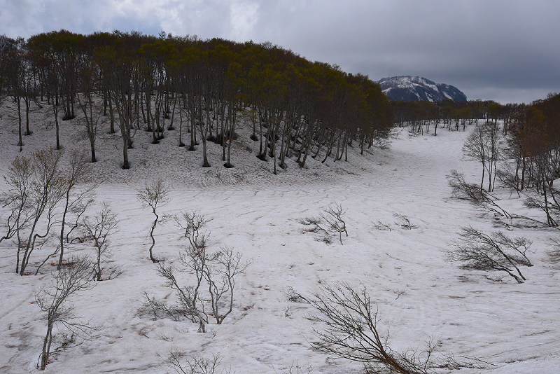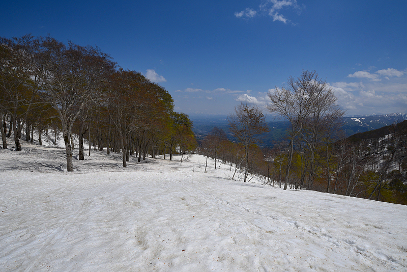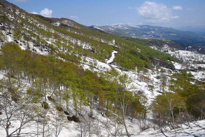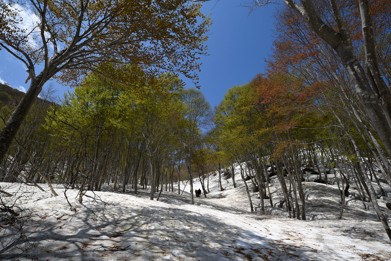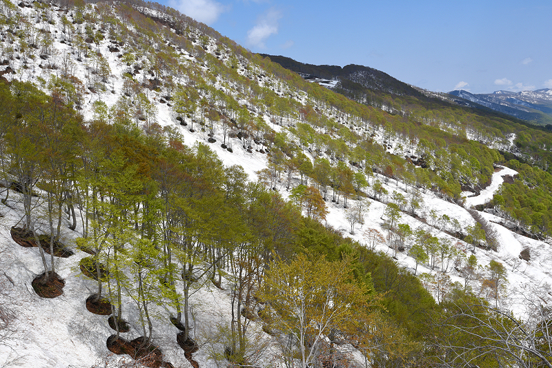 ブナの新緑と雪のコントラストが素晴らしかった。