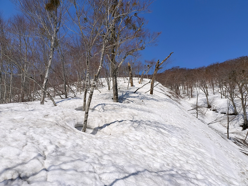 こちらの尾根はなだらかな斜面が続き、登りやすいです。
