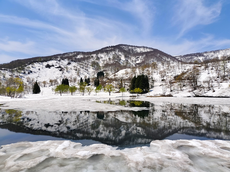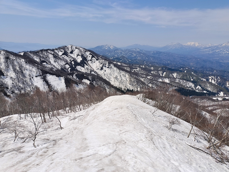 ここから見る火打山と妙高山は、麓の新緑と残雪のコントラストが素晴らしいと思います。