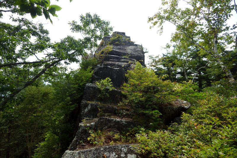 的岩山に登るつもりで的岩までやってきたが、胸までありそうな藪漕ぎと2時間後に雨が降りだしそうだったので、何となくやる気が無くなって的岩だけ登って帰ってきた。 |