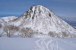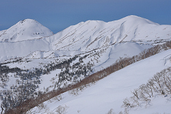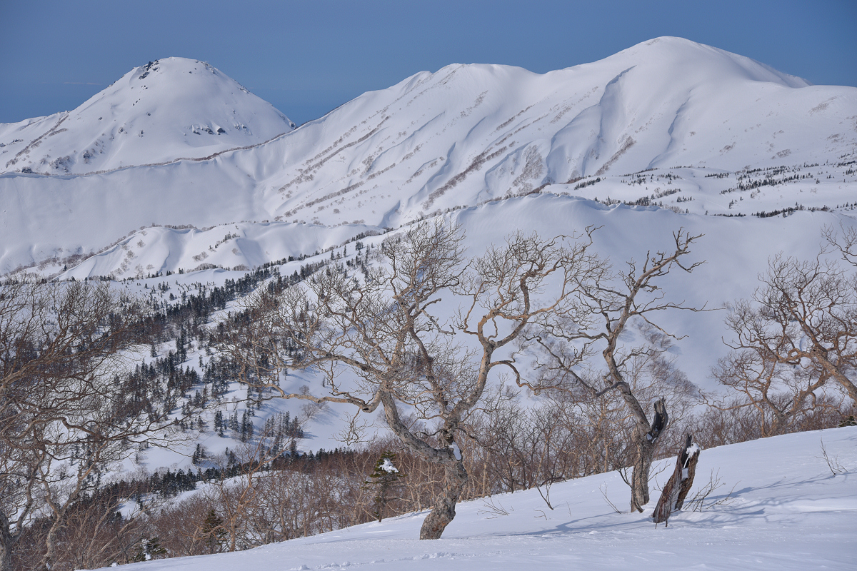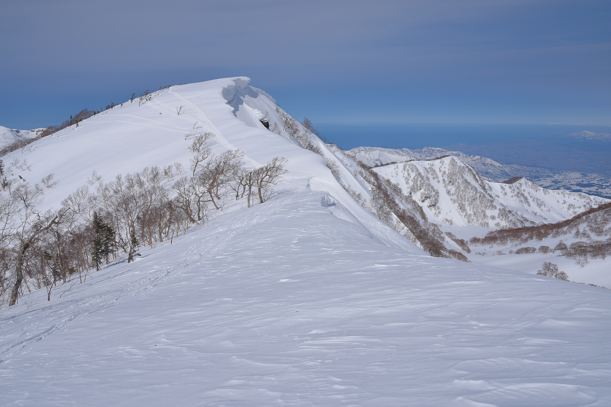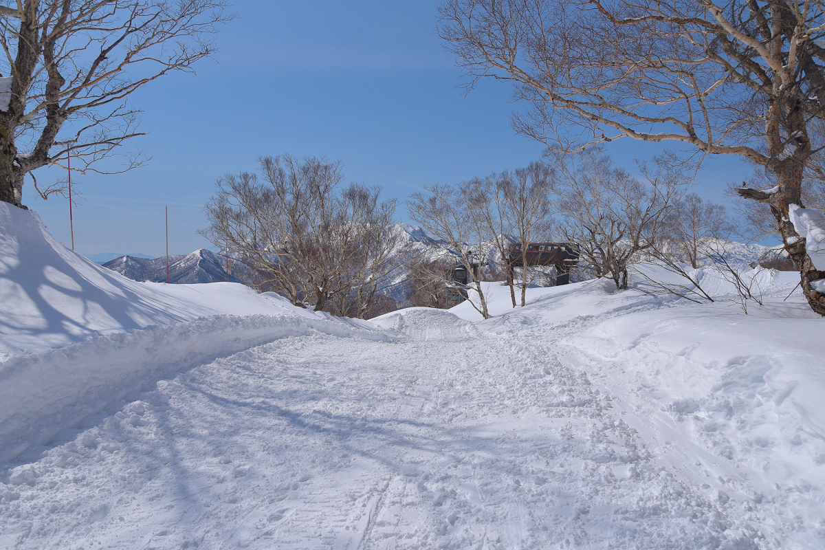 出発が遅かったのでトレースは完璧でしたが、前日に降った雪が太陽に照らされて激重パウダーになってました。