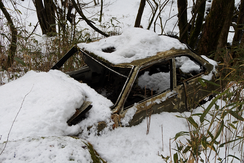途中で雪が消えてしまいスキーを背負って男女倉口に戻ってきました。