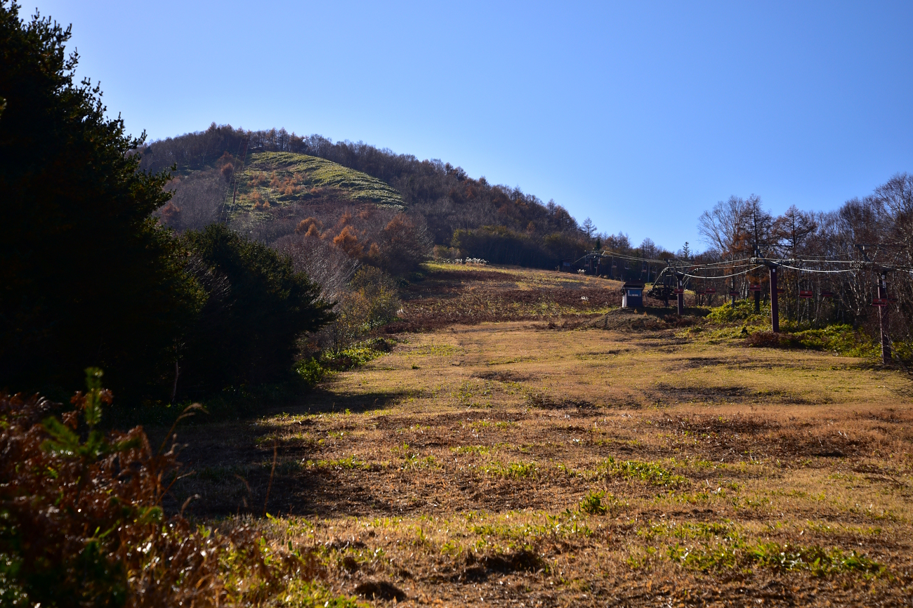 スキー場内をウロウロしながらシングルリフトの前を通過。山頂が見えました。