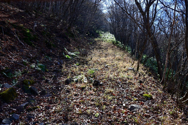 踏跡を探しながら歩いてると何となく分かる道がありました。途中で不明瞭になりますが、地形図には載っていない道でした。