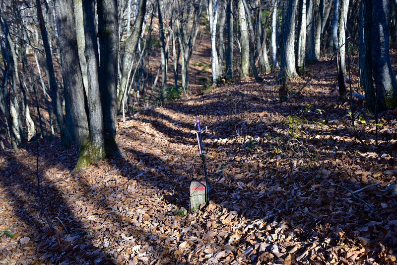 登山道の面影を発見しました。藪が濃いので慎重に進みます。