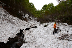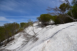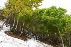 先週は少しだけブナの芽吹きが早かったので、藪漕ぎする覚悟で鍋倉山に登りました。