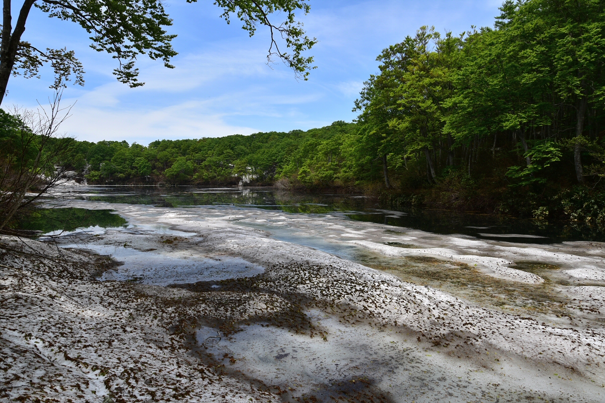 新緑のブナと残雪を見る為に鍋倉山へ。子供と一緒に登るが、下りが厳しそうだったので途中で引き返す。茶屋池周辺でブラブラしながら散策しました。