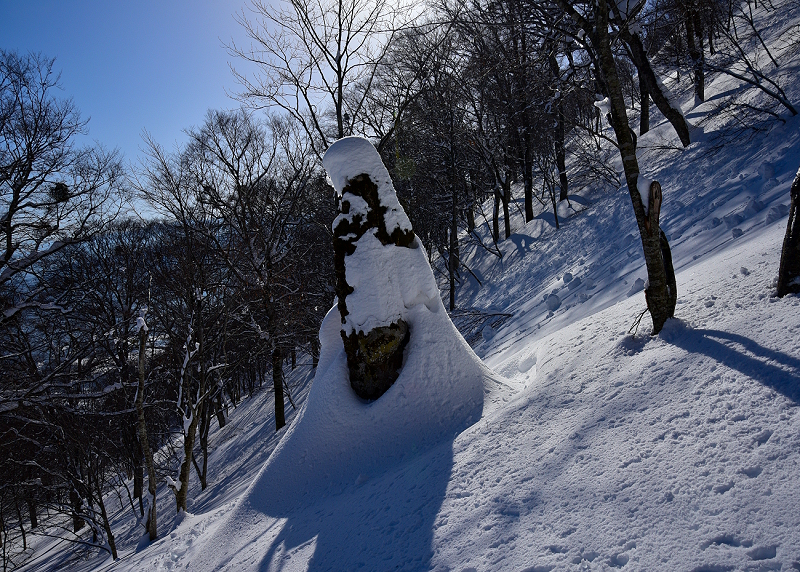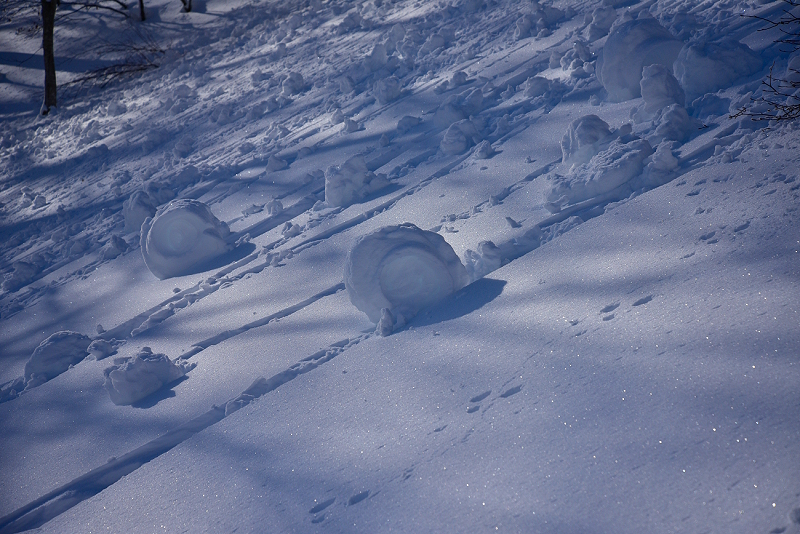 森太郎跡の近くまでやってくると、昨日の重そうな雪が転がってます。