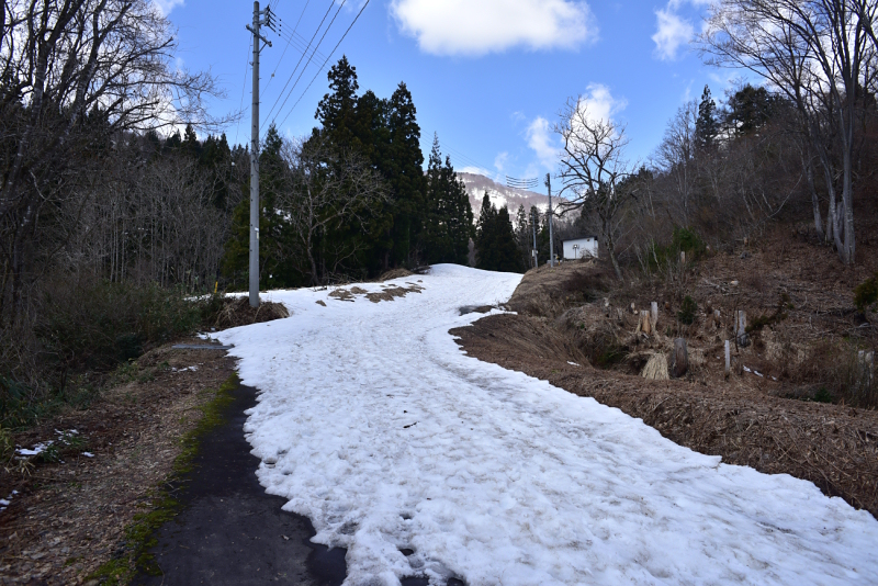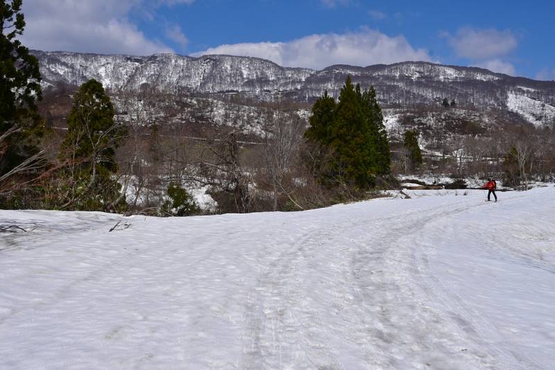 藪スキーを避ける為に道路を滑りました。今シーズンの鍋倉は終了になりました。