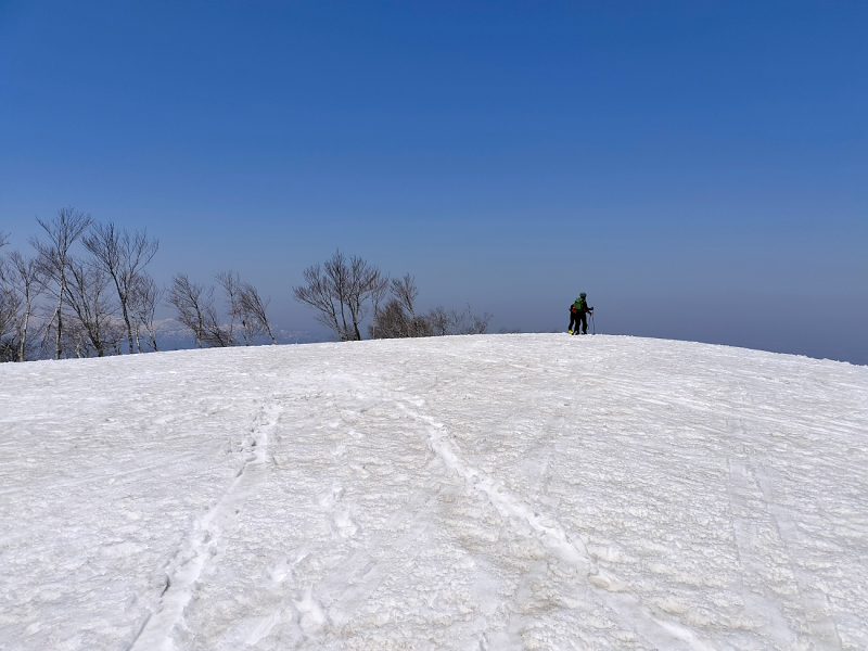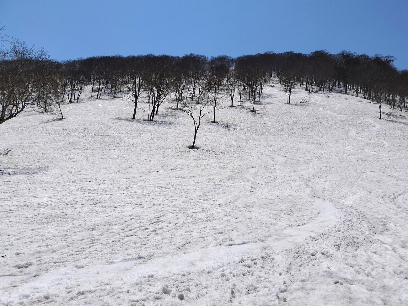 今シーズンの鍋倉山は、残雪豊富でゴミも少なく雪質も良好。いつものGWを考えると当たり年である。昨日から林道も開通しており、お手軽に鍋倉山で遊べた。 |
