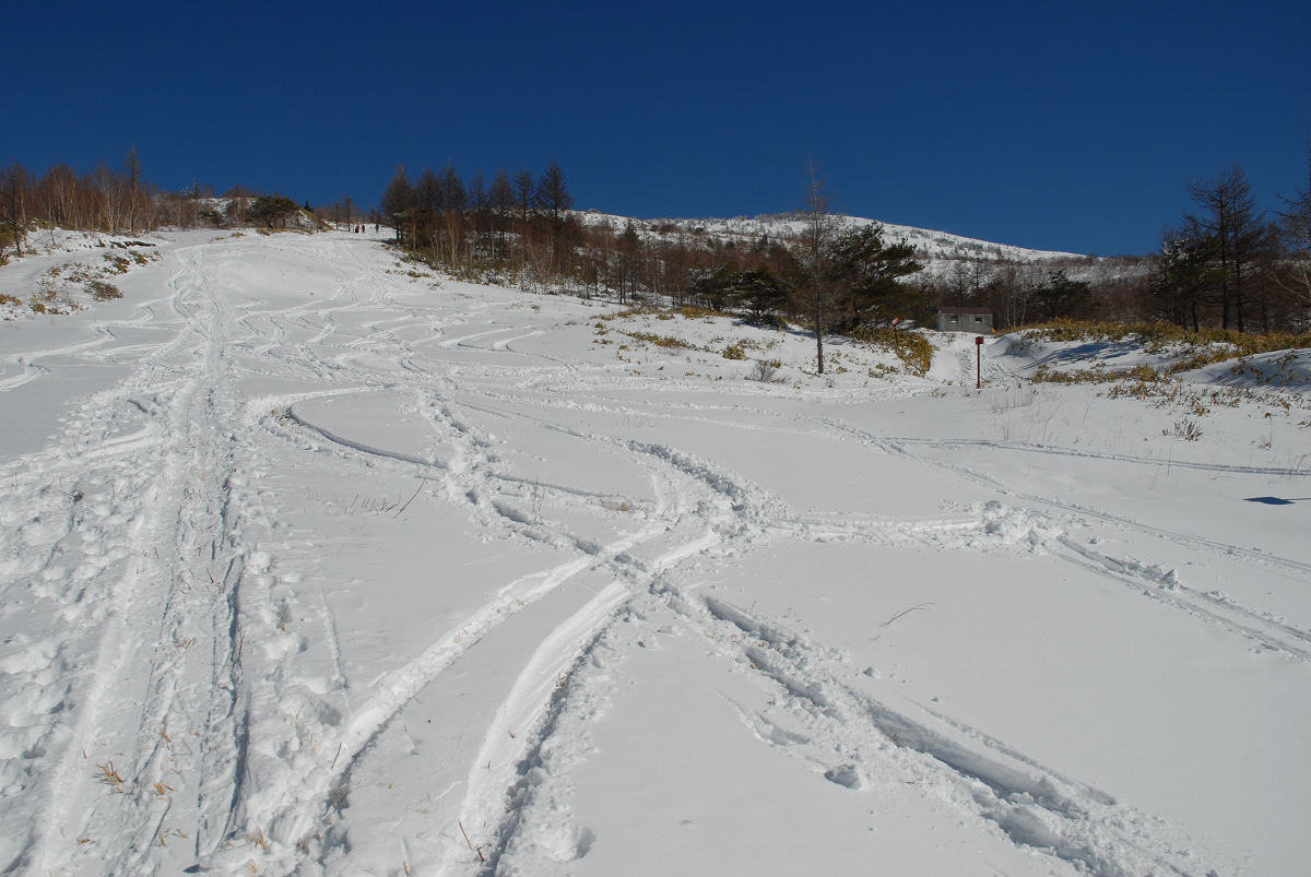 天気、雪質とも文句なしの1日でした。但し、雪が少ないので2月とは思えないほどの景色が広がっていました。