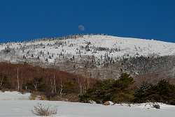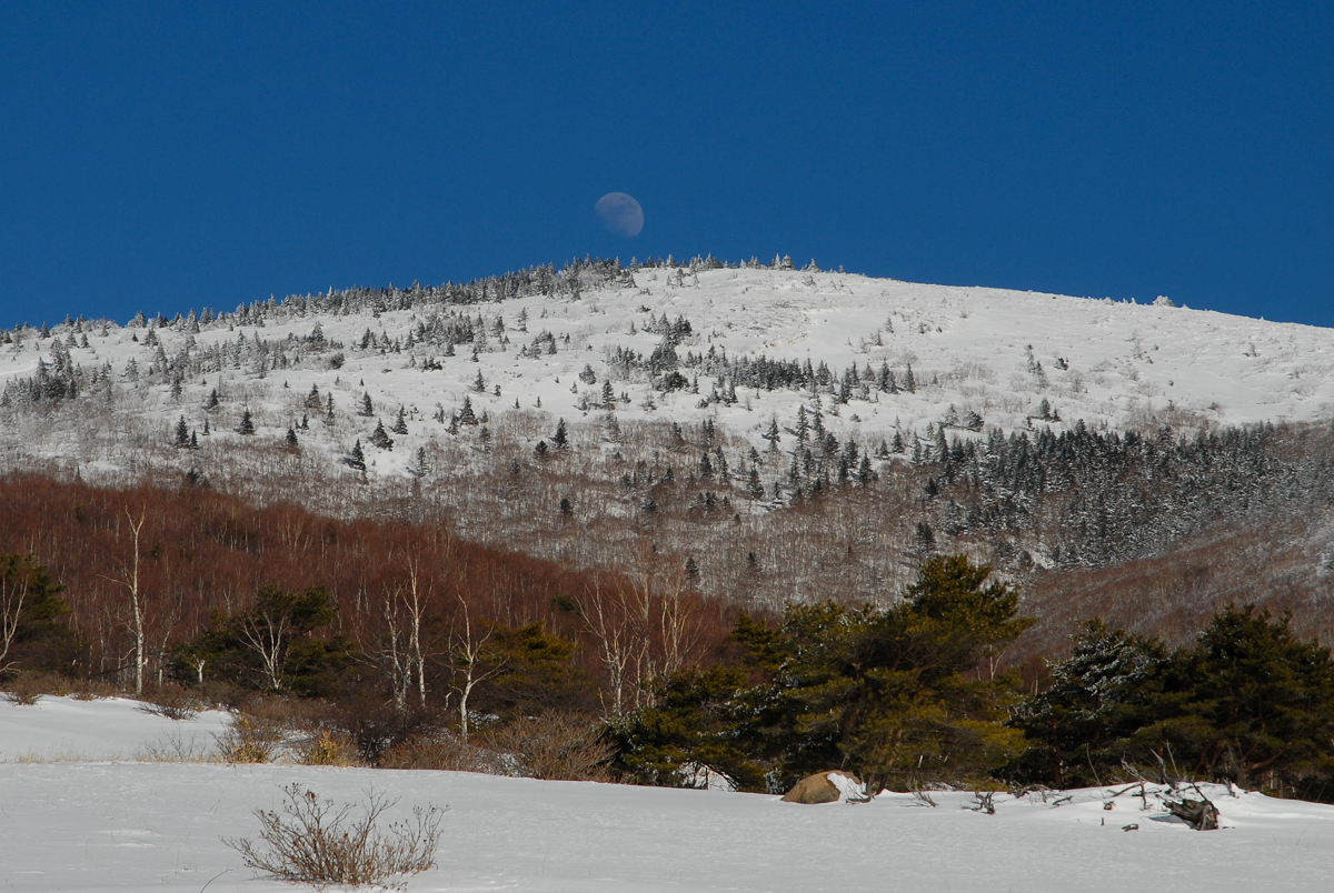 根子岳の山頂付近に月が現れました